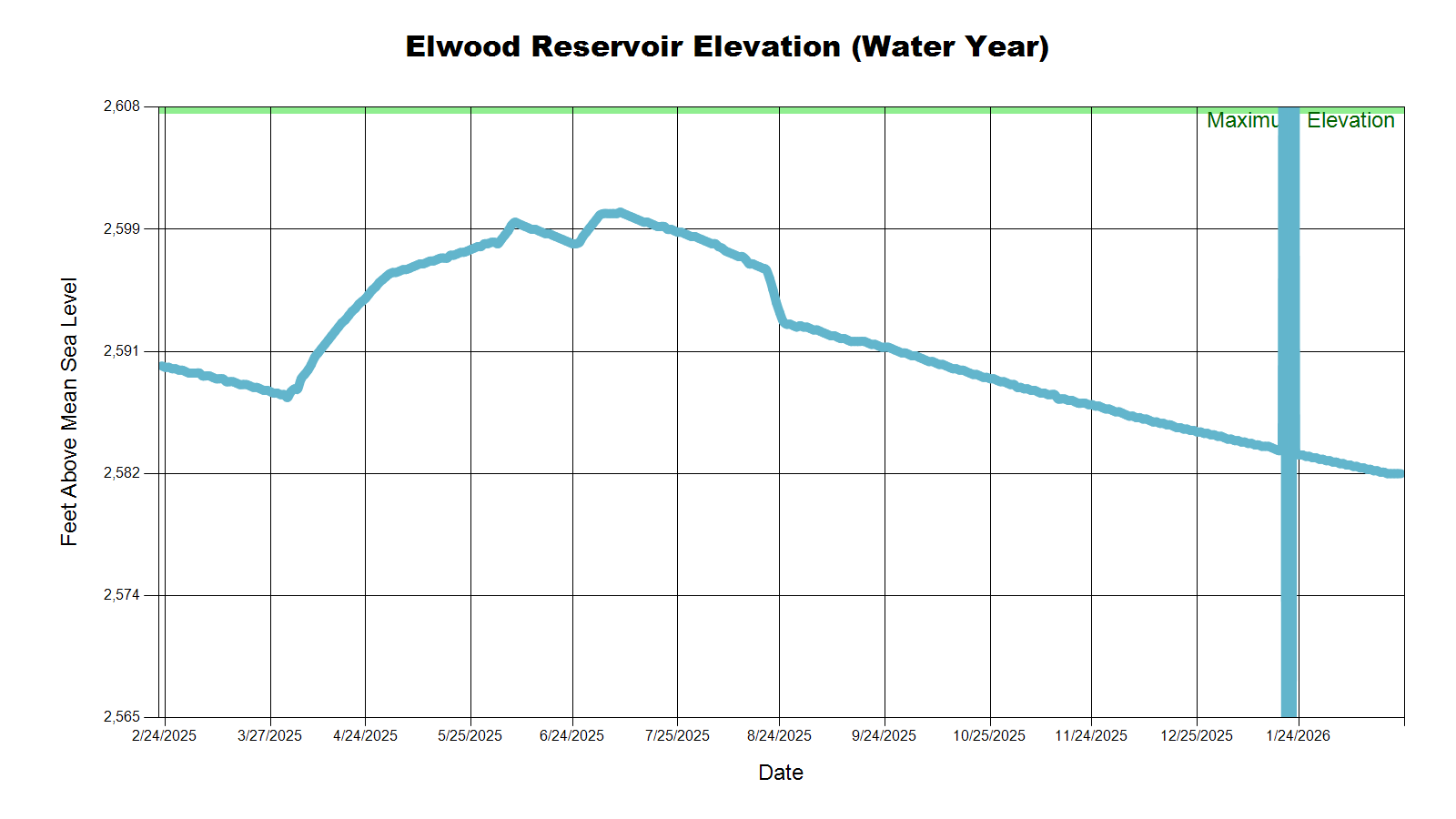 | Elwood Reservoir | 2,582.0 | 2,582.2 | 2,583.4 | 2,589.5 |