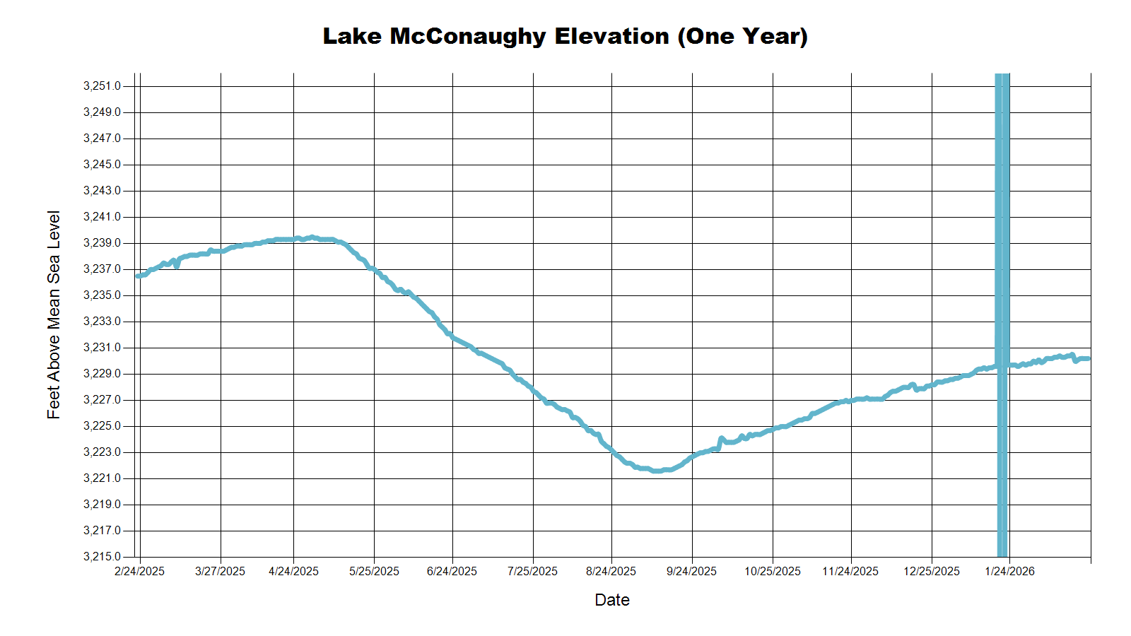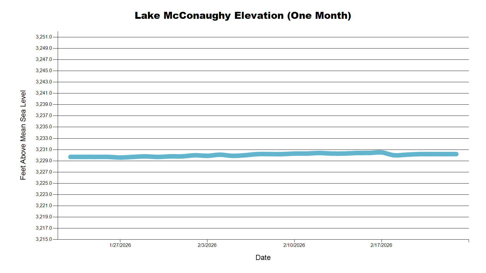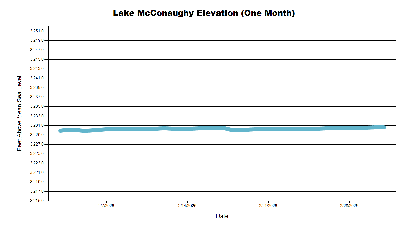 | Location | Today (Feet above Sea Level) | 1 Week Ago | 1 Month Ago | 1 Year Ago |