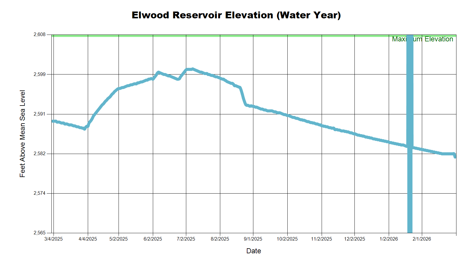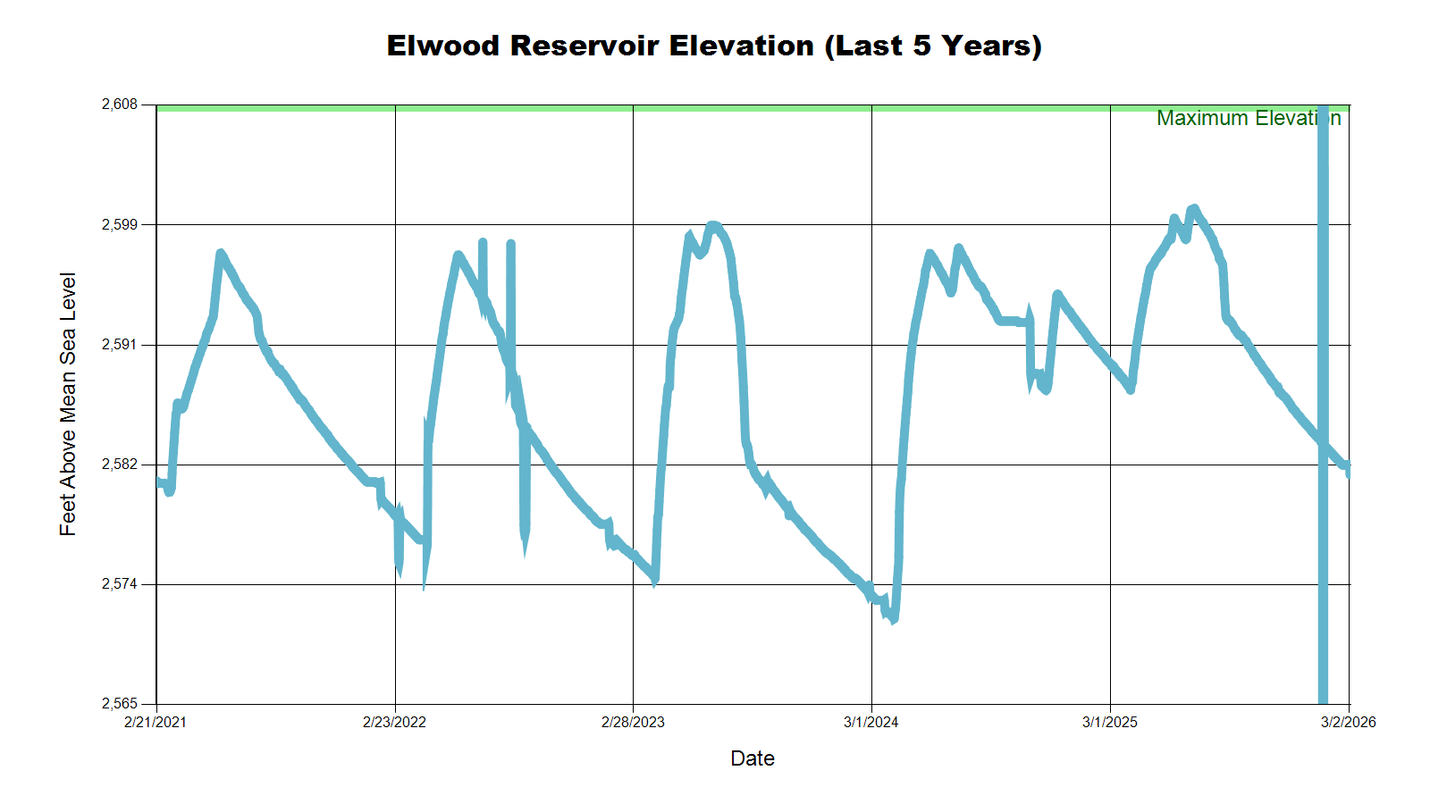 | Elwood Reservoir | 2,583.6 | 2,584.0 | 2,585.3 | 2,591.6 |