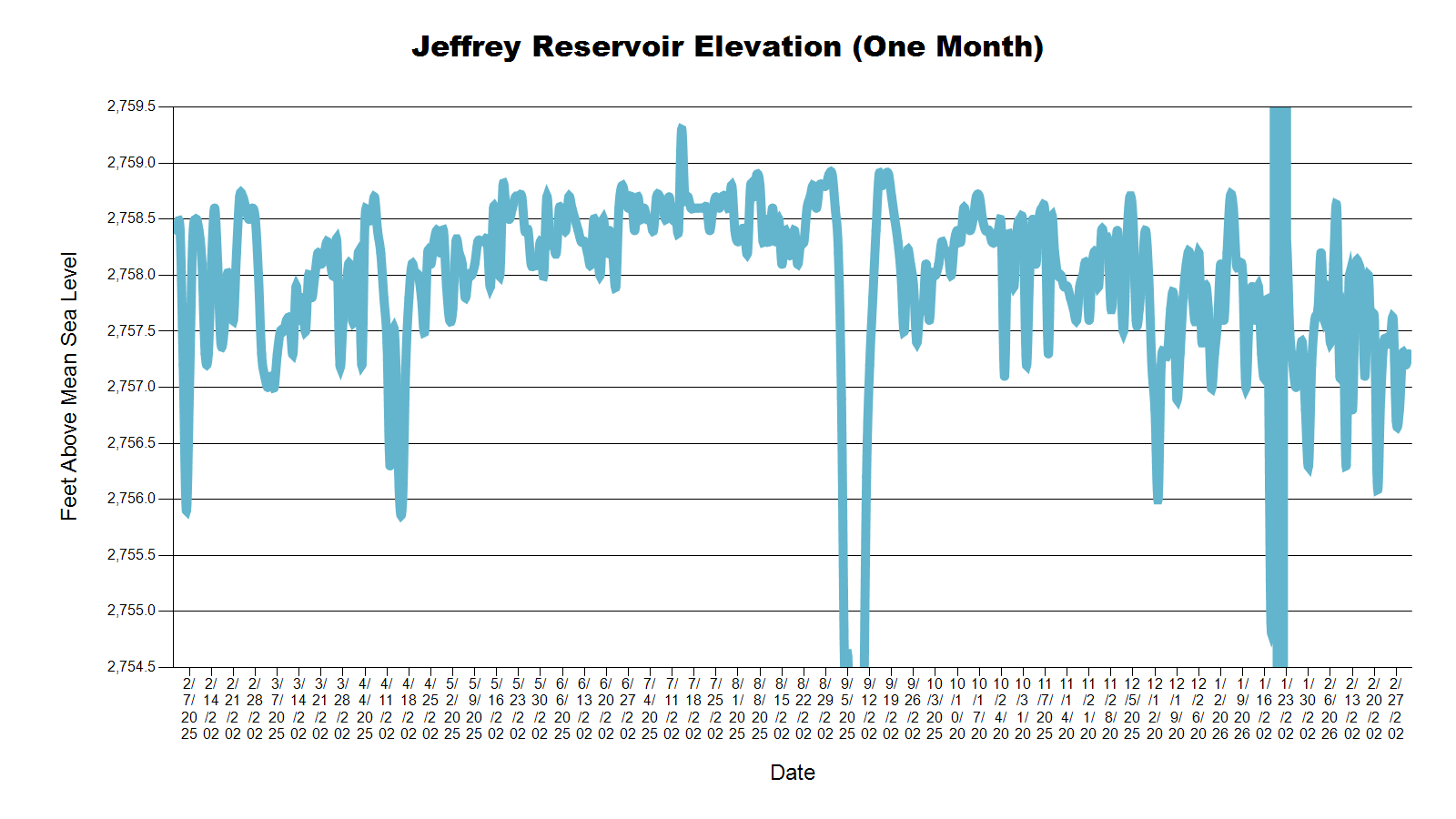 | Jeffrey Lake | 2,756.9 | 2,757.1 | 2,757.3 | 2,758.2 |