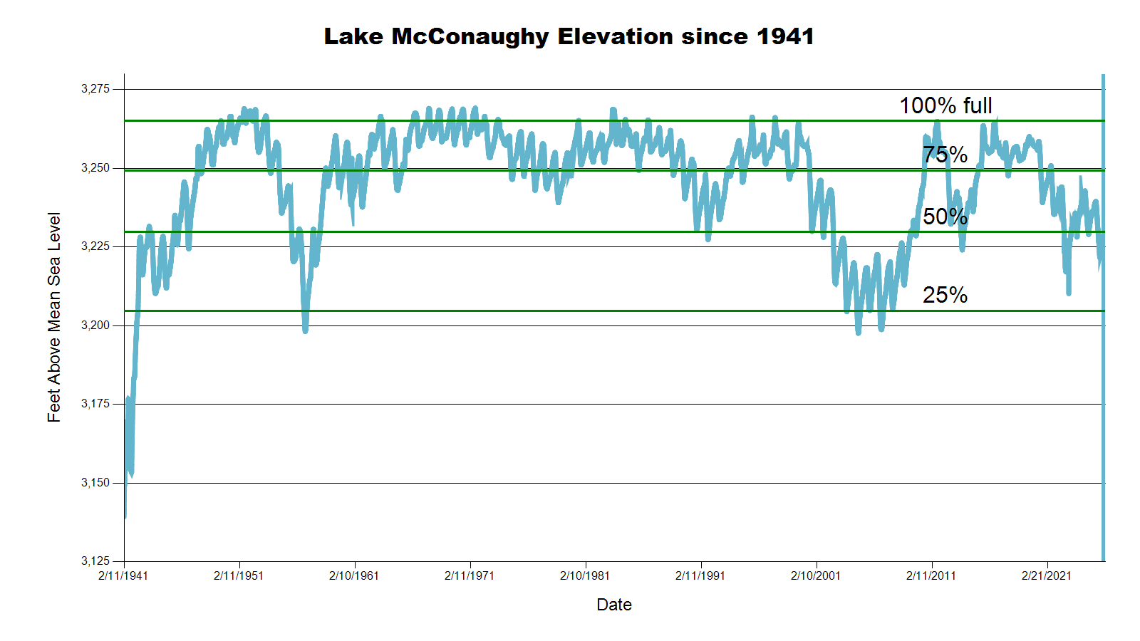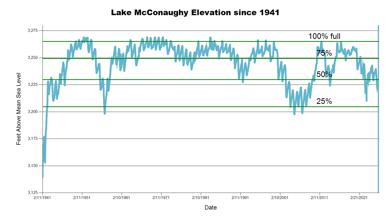| Lake McConaughy | 3,229.6 = 868,000ac-ft (49.8% capacity) | 3,229.5 | 3,228.2 | 3,236.4 |